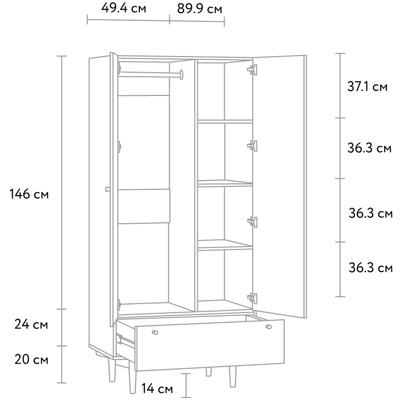 Өлшемдері: Длина 86 қараңызхШирина 52 қараңызхВысота 190 қараңыз