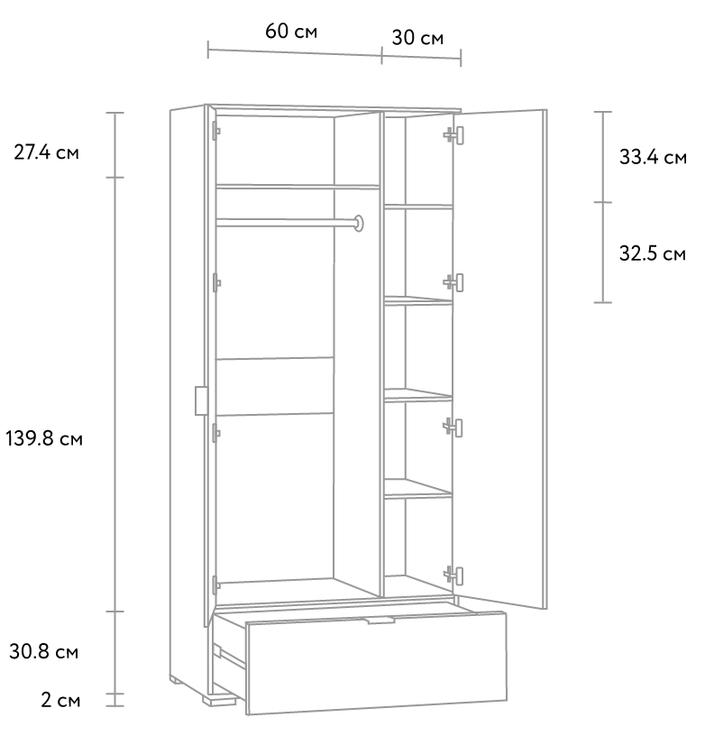 Топсалы шкаф Стелла-2.1-90-200 Oak