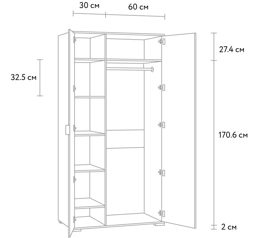 Топсалы шкаф Стелла-2-90-200 Oak