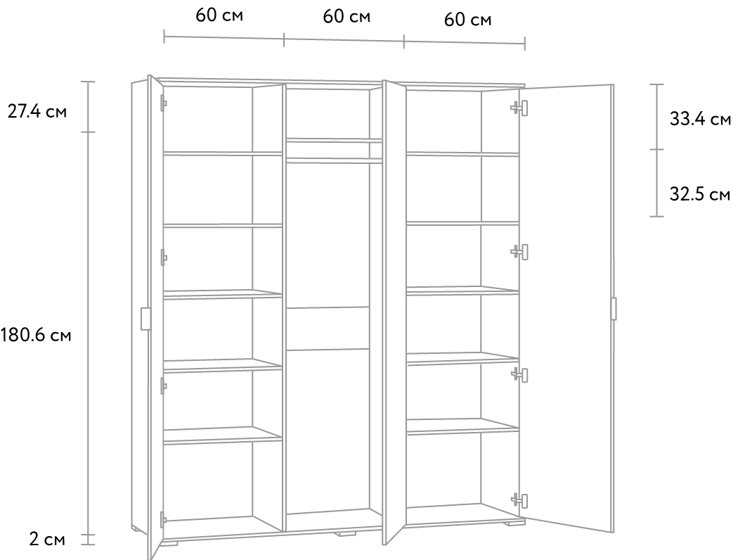 Маңызды! Купе шкафының тереңдігі 60 см-ден кем / топсалы шкафтың тереңдігі 50 см-ден кем болғанда, тартылатын штанга орнатылады.