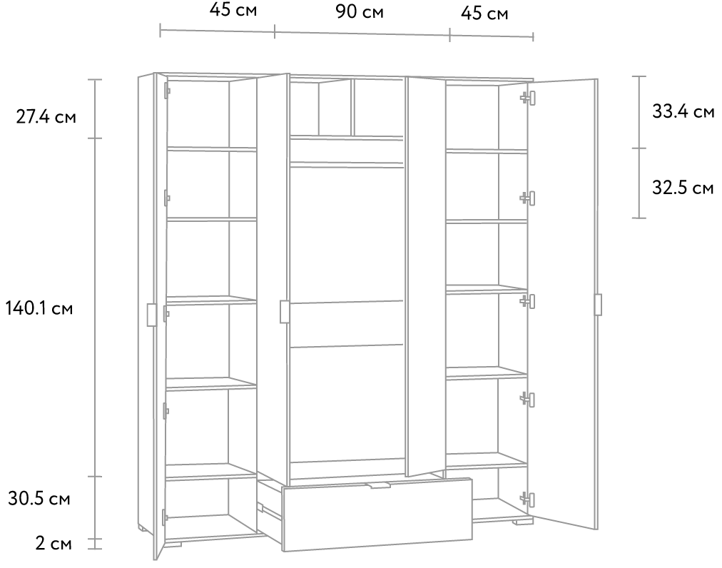 Топсалы шкаф Стелла-4.1-180-200 Oak