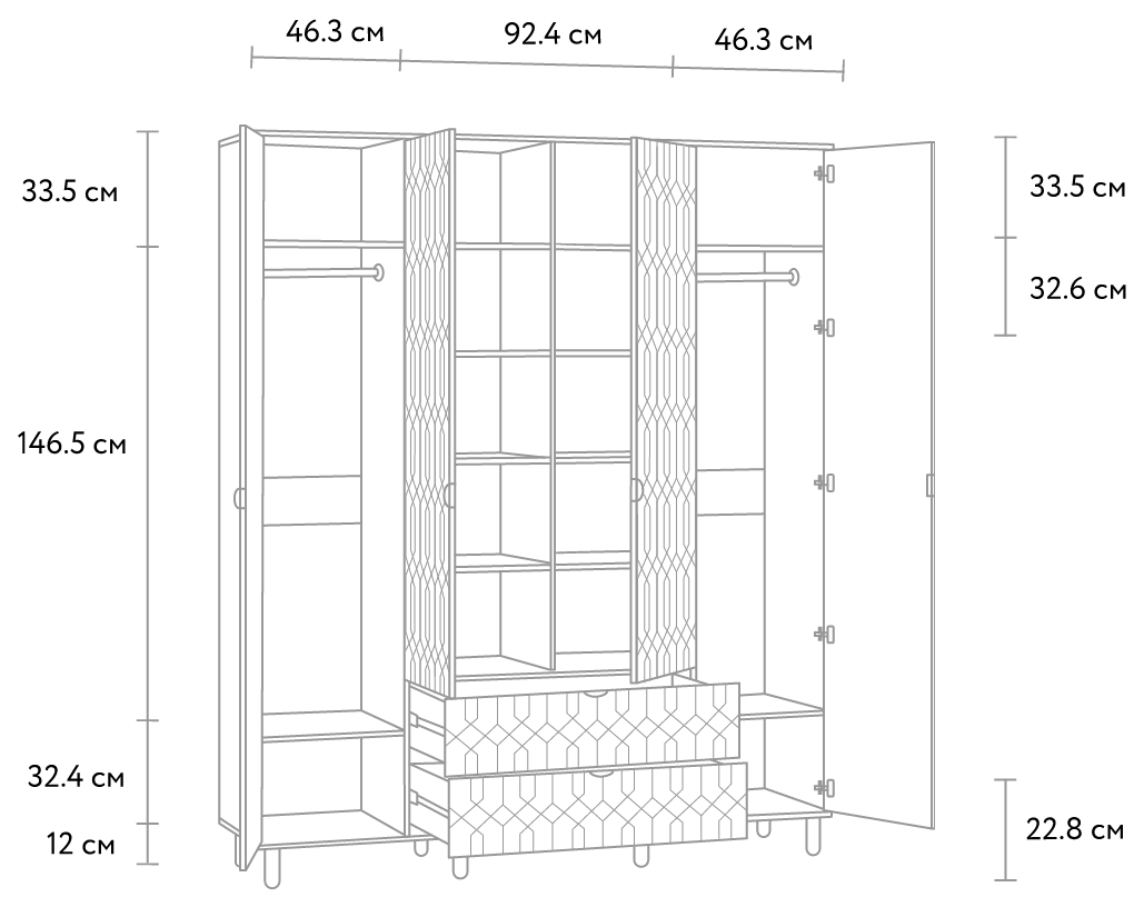 На дополнительных схемах указаны размеры полезного пространства системы хранения.