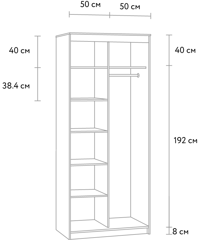 Қарапайым және тартымды қасбет, жоғары сапалы жабдықтар және жақсы эргономика-ekonom-2 сериялы гардероб-гардероб қалалық пәтерде немесе шағын кеңседе кеңістікті ұйымдастырудың тамаша шешімі болады. Нымам өлшемдерінің арқасында ол жеке гардероб пен үй заттарын сақтауға сенімді түрде қамқорлық жасап қана қоймайды, сонымен қатар кеңістікті үнемдейді. Модельдің алдыңғы жағы үлкен және ыңғайлы айнамен безендірілуі мүмкін. Есіктердің артында сіз ойластырылған ішкі толтыруды күтесіз. Ал щетка таспасының болуы шкафтың ішіне шаңның түсуіне жол бермейді және қақпақтардың үнсіз ашылуын және жабылуын қамтамасыз етеді (бұл элемент өнімнің негізгі жиынтығына кірмейді және бөлек сатып алынады).