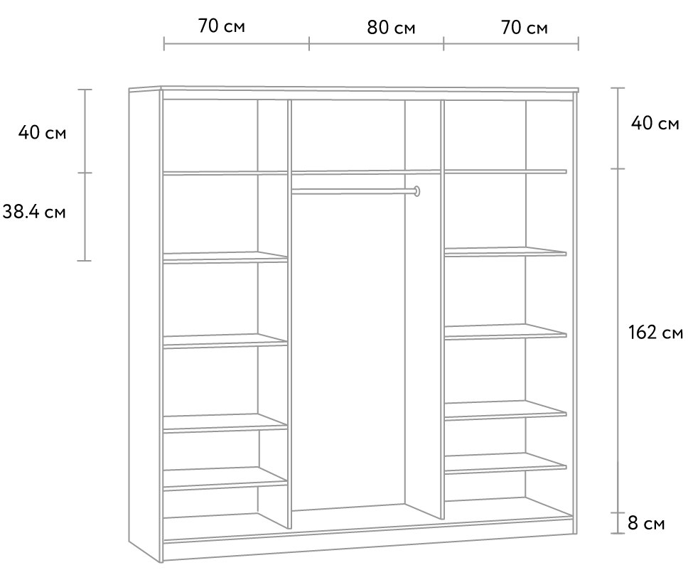 "Довиль" - үш есікті шкаф, кең және киімді тамаша тәртіпте сақтауға ыңғайлы. Қарама-қарсы қасбеттері бар лаконикалық дизайн заманауи интерьерге оңай сәйкес келеді. Сенімді "Версаль" есік жүйесі шкафтың ұзақ қызмет ету мерзімін қамтамасыз етеді, ал мұқият толтыру гардеробты ұйымдастыруға көмектеседі.