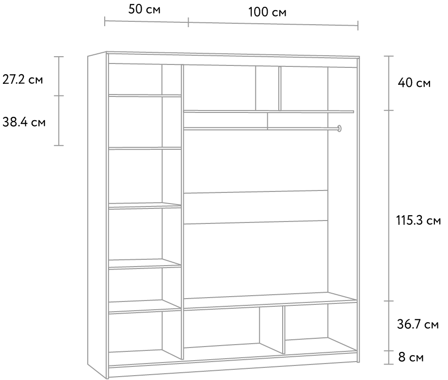 Маңызды! Купе шкафының тереңдігі 60 см-ден кем / топсалы шкафтың тереңдігі 50 см-ден кем болғанда, тартылатын штанга орнатылады.