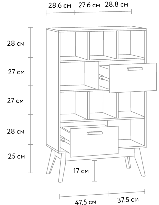 Сақтаудың практикалық шешімі -ныйам сөре. Қарапайым дизайн және органикалық дизайн оны жан-жақты етеді. Сөре қонақ бөлмеге, жатын бөлмеге, жұмыс бөлмесіне, ас үйге және тіпті балконға – қосымша сақтау жүйесі қажет кез келген бөлмеге жақсы сәйкес келеді. Заманауи ламинатталған ДСП-дан жасалған берік жақтау ауыр жүктемелерге төтеп бере алады. Бейтарап бояу кез-келген интерьер стиліне сәйкес келеді, классикадан қазіргі заманға дейін.