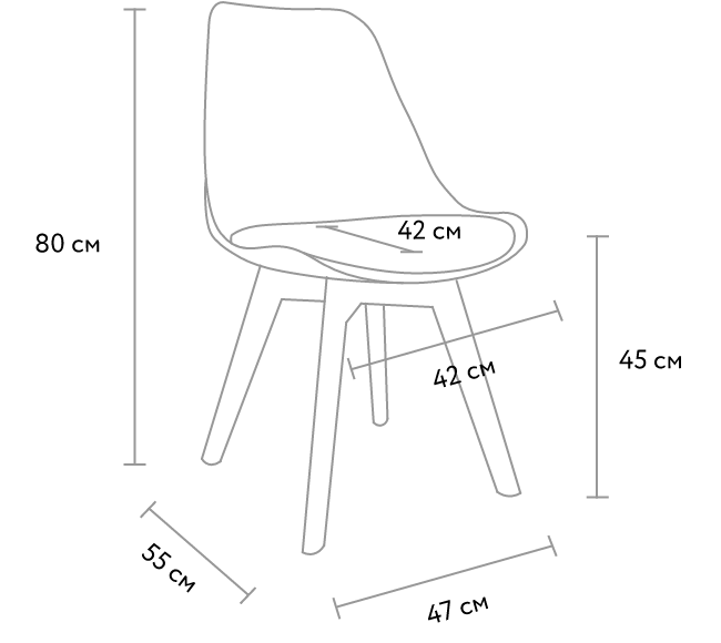 Орындық интерьерге лаконикалық стильде – минимализмге немесе ретроға сәйкес келеді. Эко-былғарыдан және пластиктен жасалған монолитті орындық дененің жайлы күйін сақтайды және сонымен бірге жаңа және стильді көрінеді. Табиғи боялмаған Бук массивінің жақтауы орындықтың көлеңкесіне контраст жасайды. Модельдің тұрақтылығы мен өзектілігі кофеханада немесе барда немесе қонақ бөлмесінде немесе асханада үйде орынды.
