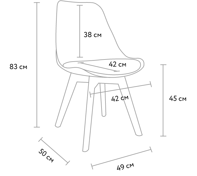 Орындық интерьерге лаконикалық стильде – минимализмге немесе ретроға сәйкес келеді. Эко-былғарыдан және пластиктен жасалған монолитті орындық дененің жайлы күйін сақтайды және сонымен бірге жаңа және стильді көрінеді. Табиғи боялмаған Бук массивінің жақтауы орындықтың көлеңкесіне контраст жасайды. Модельдің тұрақтылығы мен өзектілігі кофеханада немесе барда немесе қонақ бөлмесінде немесе асханада үйде орынды.
