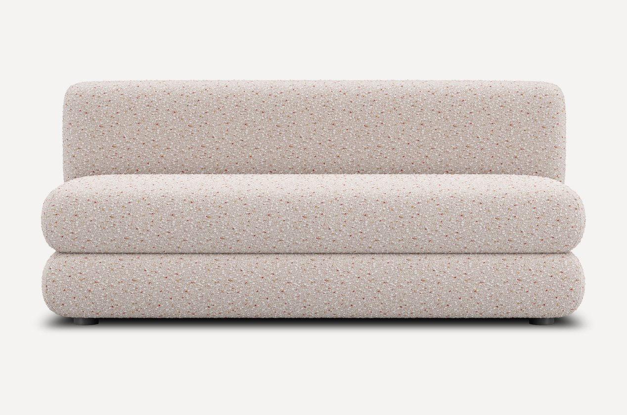 Уникальный дизайн, разработанный Димой Логиновым, сочетает плавные формы и тактильно приятные фактуры. За счет плотной велюровой ткани создается меланжевый эффект и спокойный матовый блеск, который подчеркивает округлые линии мебели.