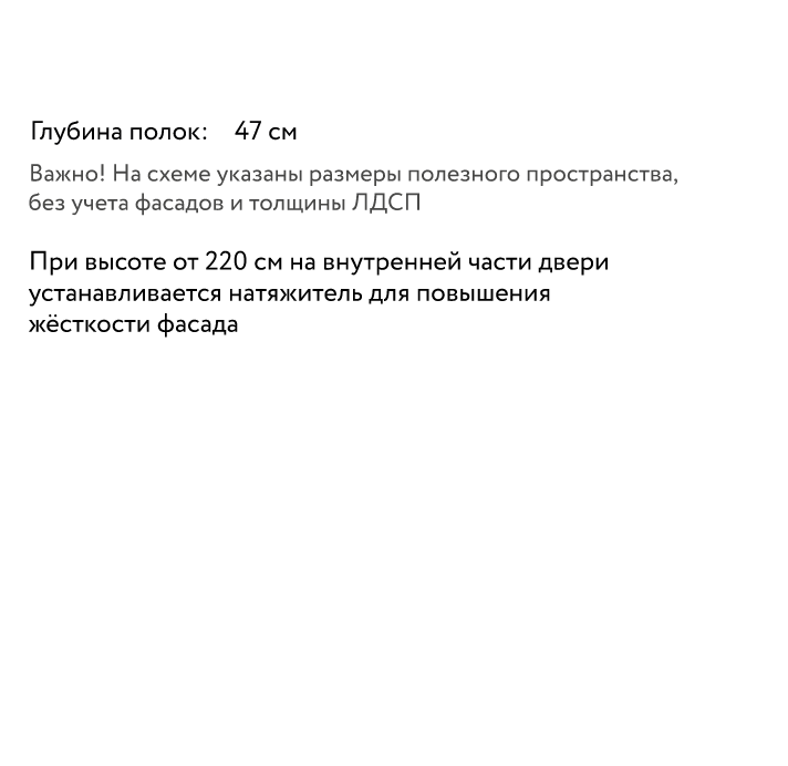 ВАЖНО! При глубине шкафа-купе менее 60 см / распашного шкафа менее 50 см, устанавливается выдвижная штанга.