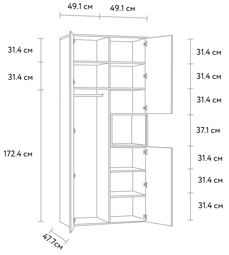 Распашной шкаф Висмар 2-103x240 Пепельный