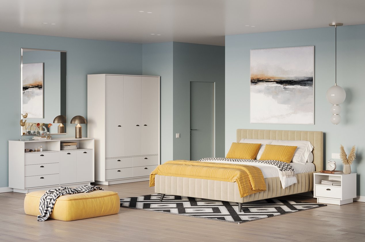 Модульная спальня – отличная возможность создать подходящую для отдыха и сна атмосферу. Все гарнитуры являются модульными, поэтому необходимую комплектацию изделий вы можете определить сами. Удачное цветовое решение, основанное на контрасте, с лаконичным декором – образец современного минималистичного стиля. За долговечность изделий отвечает сертифицированные материалы: прочная ЛДСП, надежные крепления и качественная фурнитура.